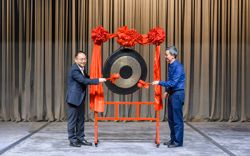 揭牌仪式结束后,赵阳与绍兴市演艺集团党委书记、董事长潘永松共同为“戏曲进高校”活动仪式开锣。