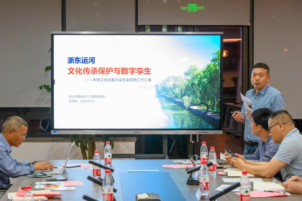 邱志荣从浙东与浙东运河、浙东运河价值地位、浙东运河文化及举例、绍兴运河园与浙东运河文化园四个方面作了题为《通达江海,好运天下——浙东运河文化概述》的主旨发言。人工智能研究院执行院长李虎雄介绍了浙东运河文化传承保护与数字孪生文旅部重点实验室筹备进展情况。数理信息学院张维加教授以“5G时代下的云端畅游——沉浸式预体验旅游系统”分享了课题申报书撰写的经验。与会专家学者还围绕浙东运河文化传承保护与数字孪生、文旅部重点实验室申报和建设等相关话题进行充分的交流讨论。