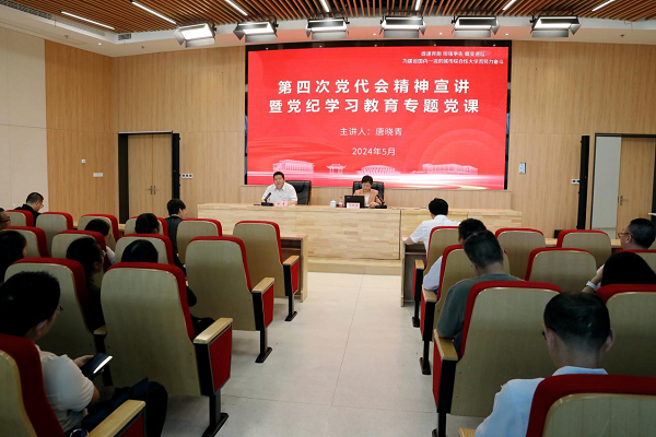 5月22日,校长赵阳赴数理信息学院讲授专题党课,带领与会党员系统学习《中国共产党纪律处分条例》,宣讲学校第四次党代会精神。数理信息学院全体党政班子成员、各党支部书记、教师党员代表参加会议。