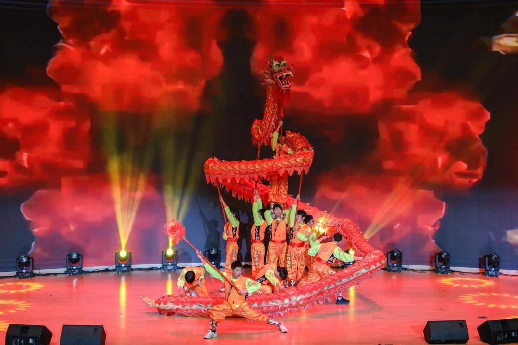 迎新晚会在《舞龙》表演中开场。晚会上演出了各分工会选送的《越城名士乡》《花园相会》《旗袍走秀》《非洲舞蹈串烧》等歌舞、朗诵、戏曲联唱、时装秀节目,以精心的编排、精美的表演惊艳现场。在充满活力与温情的《风则江畔》合唱中,晚会落下帷幕。