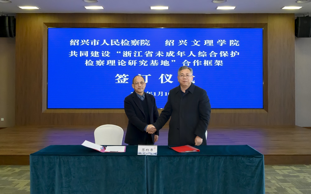 1月10日上午,学校与绍兴市人民检察院检校合作签约揭牌仪式在市人民检察院举行。校党委书记崔凤军、市人民检察院检察长黄世根、副校长柳国庆等出席仪式。市人民检察院副检察长李佑喜主持仪式。