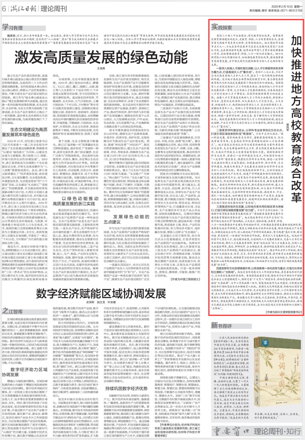 2月10日,《浙江日报》理论周刊刊发我校党委书记崔凤军教授的文章《加快推进地方高校教育综合改革》。文章强调了地方高校在教育综合改革中的重要作用,并提出了具体的改革路径和措施。崔凤军指出,地方高校应加快推进教育综合改革,以适应新时代高等教育发展的需求,提升教育质量和创新能力,为地方经济社会发展提供强有力的人才支撑和智力支持。