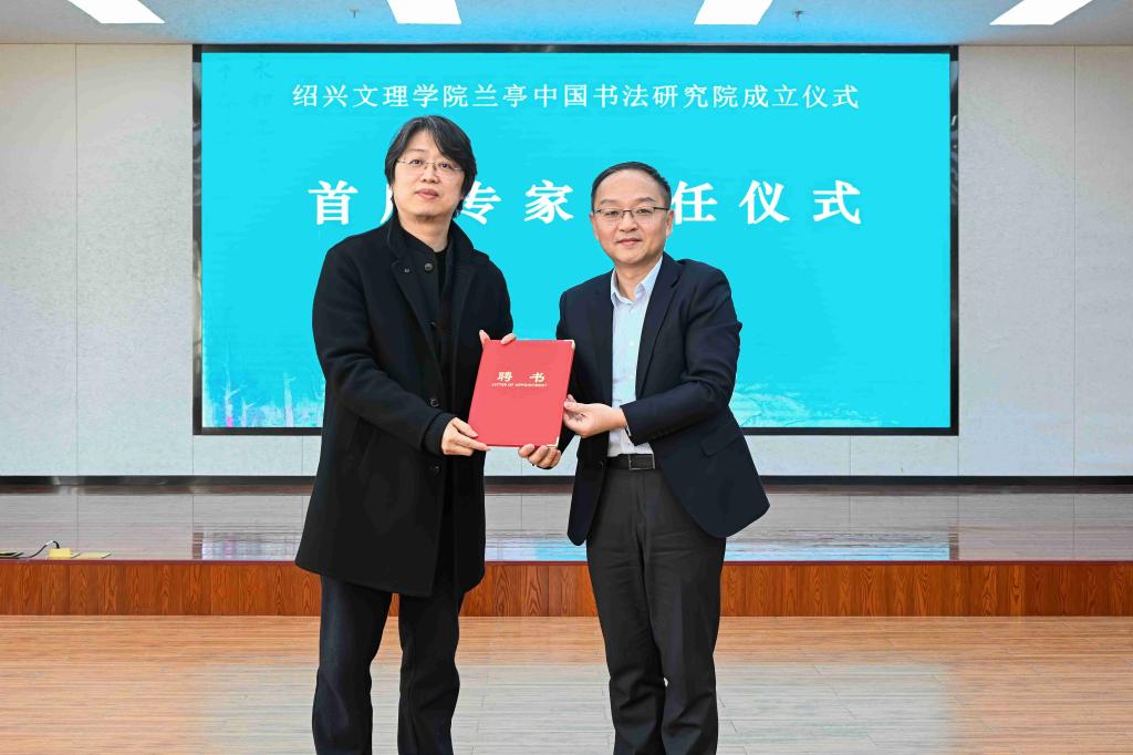 会上举行了兰亭中国书法研究院专家聘任仪式,聘任鲍贤伦为兰亭中国书法研究院名誉院长,拟聘任赵雁君为兰亭中国书法研究院首席专家,聘任祁小春为兰亭中国书法研究院理论首席专家,聘任刘恒为兰亭中国书法研究院创作首席专家,聘任沈浩为兰亭中国书法研究院教育首席专家,聘任朱培尔为兰亭中国书法研究院文化传承首席专家,聘任沈伟为兰亭中国书法研究院名誉副院长,聘任刘小华为兰亭中国书法研究院常务副院长,聘任鲁迅人文学院教授张建军为兰亭中国书法研究院副院长。赵阳为受聘专家颁发聘书。陈均土宣读聘任文件。