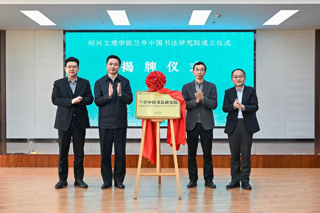 李昕、杨守卫、崔凤军、赵阳共同为兰亭中国书法研究院揭牌。