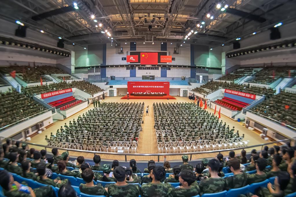 9月1日上午,我校在河西体育馆举行2025年学生军训开营仪式。绍兴市委常委、绍兴军分区大校政治委员王波,校长赵阳,副校长柳国庆,绍兴军分区战备建设处上校处长王东方,越城区人武部上校政治委员金论川,校党委委员、宣传部部长、军训团政委宋浩成,校党委学工部、人武部部长、军训团参谋长宣海江,学校办公室、人武部负责人,二级学院党委副书记、全体教官、连队指导员、参训学生参加开营式。宋浩成主持开营式。