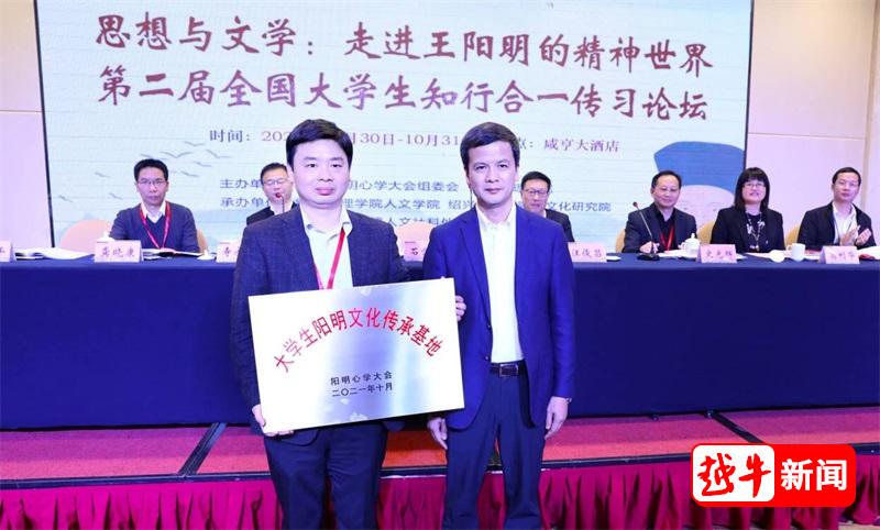 在此次活动现场,绍兴市文理学院正式挂牌成立了“大学生阳明文化传承基地”,正是为更好地推进阳明文化在大学生群体中的传播提供新载体。