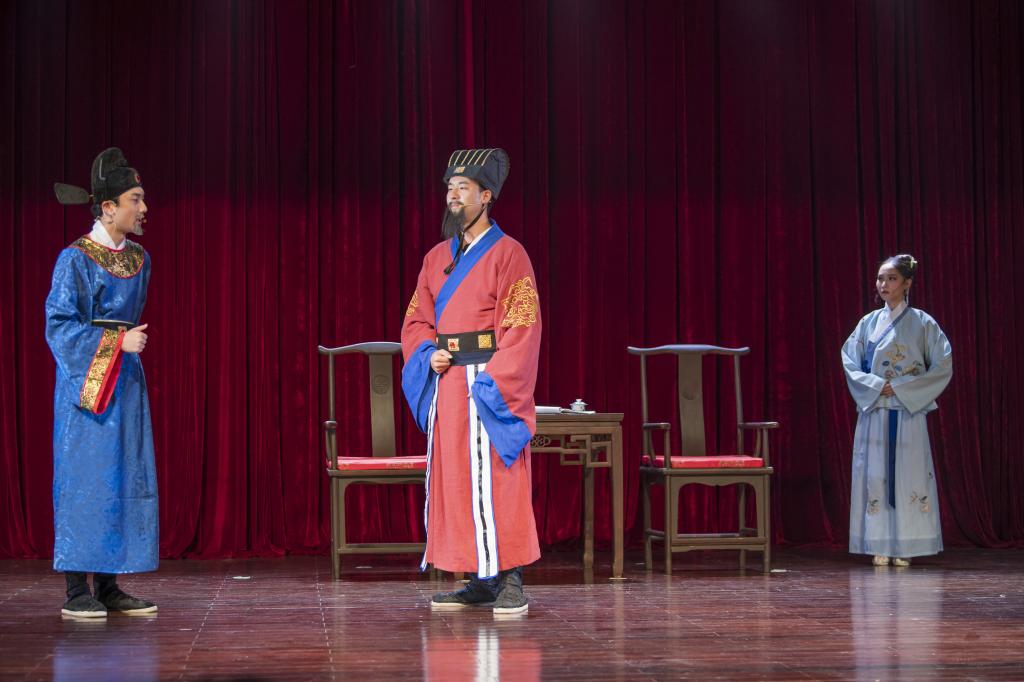 《千古一圣王阳明》由校团委、人文学院主办,党委宣传部、党委学工部、艺术学院协办。该剧聚焦王阳明立志成圣的心路历程,演绎了他从一个狂狷少年成长为心学圣人的一生,一方面对其传奇人生和圣人风采进行了形象展示,另一方面又对他“心即理”“知行合一”“致良知”的心学思想进行了艺术阐释。据悉,为了让绍兴优质文化资源“活起来”,早在去年年底,学校便筹划由今天剧社打造该剧。在指导老师的带领下,剧社还与王阳明研究专家进行交流探讨,考察探寻阳明故居、阳明洞天和王阳明墓等阳明文化遗迹。经过大半年的筹划准备和紧张创排,在今天剧社成立十周年之际正式首演。