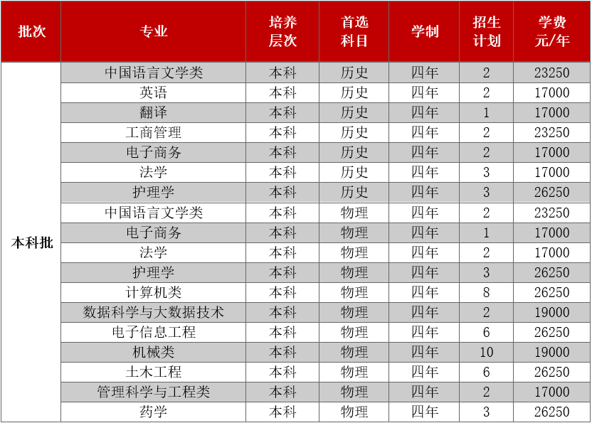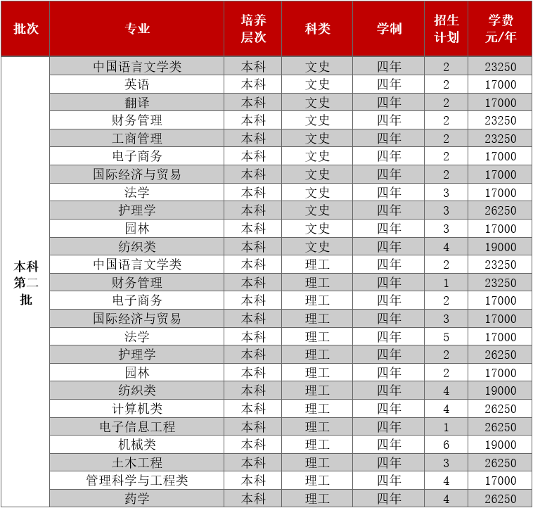 只面向浙江省招生,共有5个专业参与招生。其中面向普通类平行计划招生280人,艺术类第二批美术类120人。