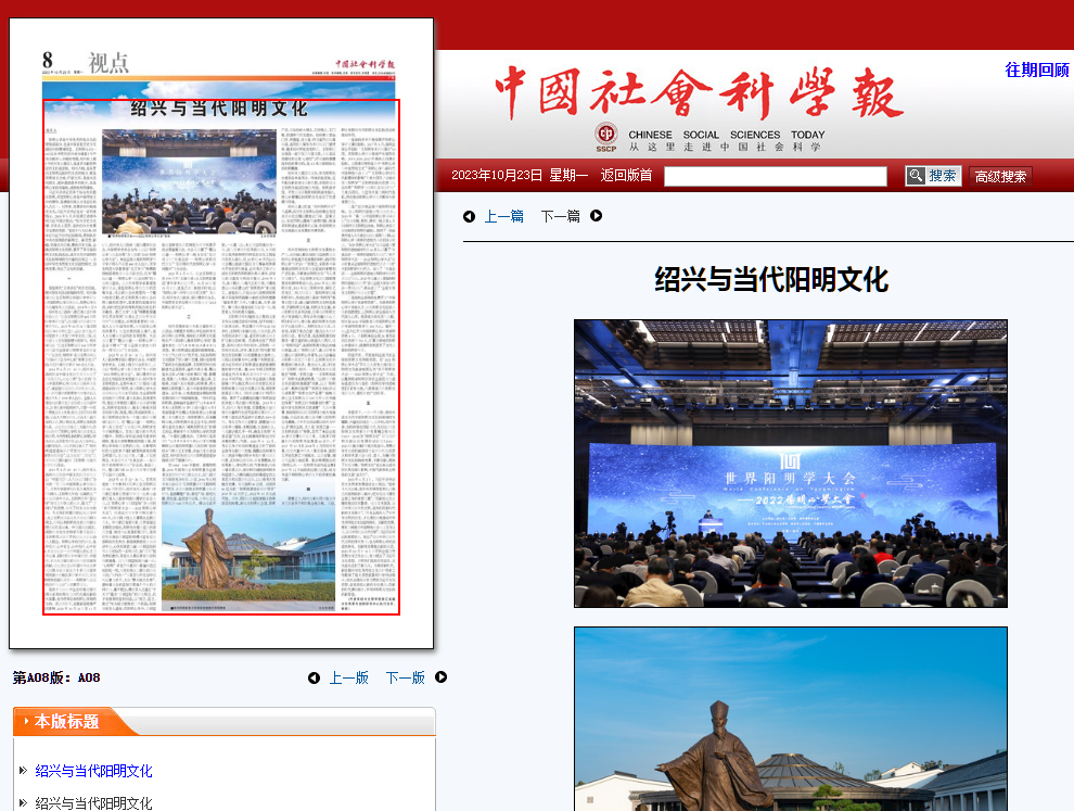 中国社会科学报10月23日:绍兴与当代阳明文化