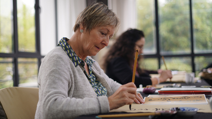 “我学书法十多年了,通过书法,我对中国的文化有了更多认识和了解。”来自瑞士的书法爱好者苏兰说,她认为书法是一种艺术,汉字图形神秘而优雅,当得知有一位中国教授在当地的书法学堂开课时,她马上去报了名,参与学习和实践,如今,书法已经成为她生活的一部分。