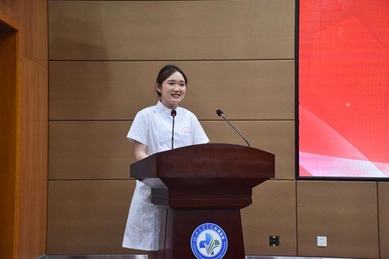 在学校2002届优秀校友吕巧霞的领誓下,全体护生举起右手,庄严宣誓,表达了献身护理事业,奉行革命的人道主义精神,坚守救死扶伤的信念,履行“保存生命、减轻痛苦、促进健康”的职责。
