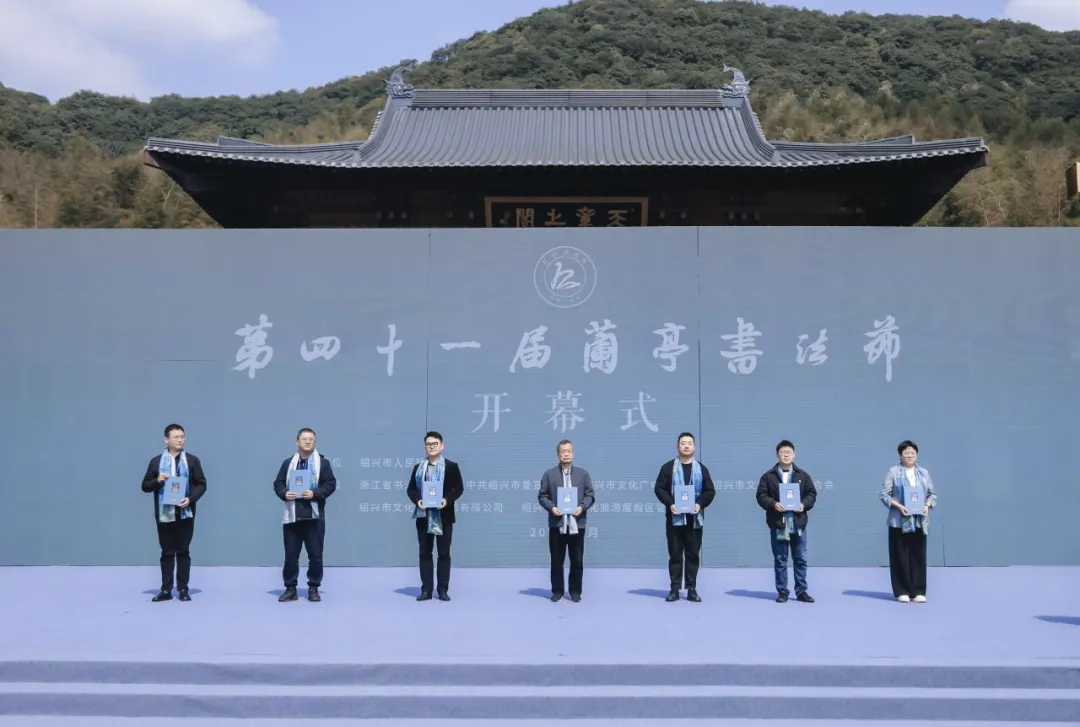 中国文联党组成员、书记处书记,中国书法家协会分党组书记、驻会副主席李昕,中共浙江省委宣传部副部长、一级巡视员、浙江省电影局局长范庆瑜,浙江省文联党组书记、副主席、书记处常务书记杨守卫,中共绍兴市委书记施惠芳,绍兴市人大常委会主任谭志桂,绍兴市政协主席张新宇共同为展览开幕。