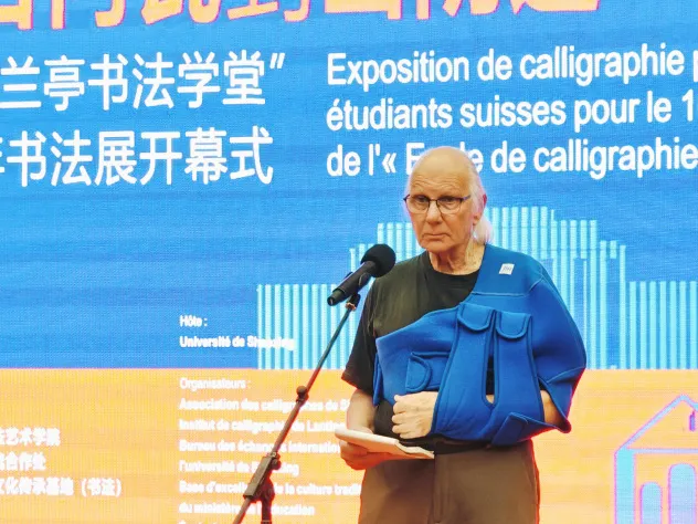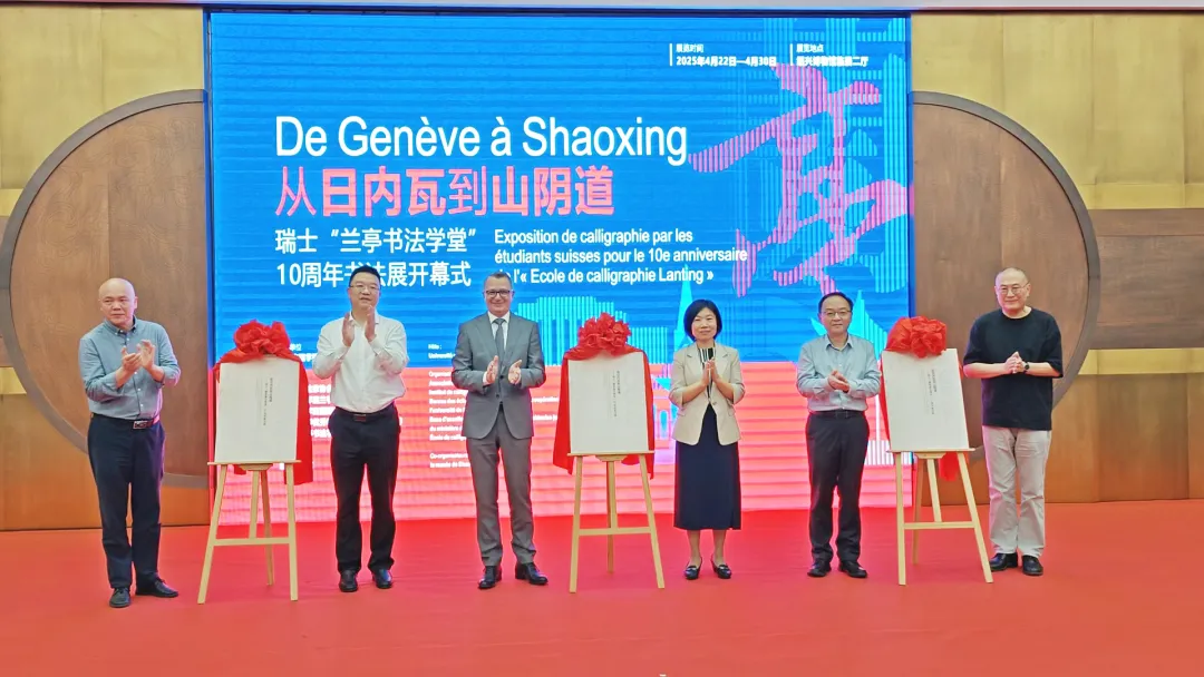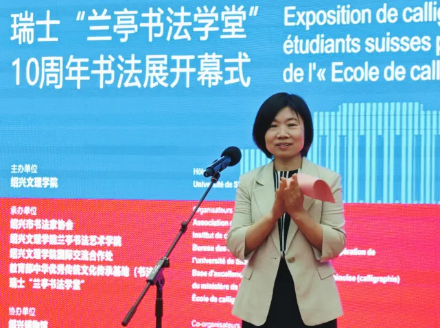 张雪代表绍兴市政府向远道而来的瑞士友人及各位嘉宾致以热烈欢迎,向为文化交流辛勤付出的工作者表达衷心感谢,并宣布展览开幕。她表示绍兴因《兰亭集序》成书法文化地标,又因“兰亭书法学堂”搭建起中瑞文化交流桥梁,让瑞士学员不仅掌握书法技法,更领略到 “天人合一”“刚柔并济” 的东方智慧,同时也让中国感受到艺术无国界的魅力,实现了双向的文化交流与对话。未来,绍兴将以书法为桥,深化国际文化交流,让这座城市成为世界文明互鉴的舞台。