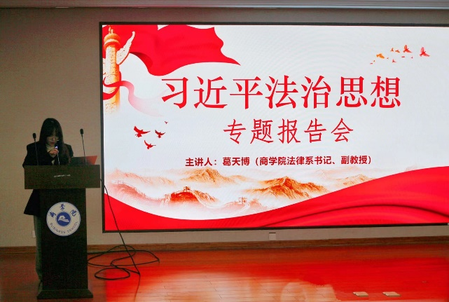 开展专题讲座。11月18日下午,我校邀请绍兴市中级人民法院戚立晶法官、金逸法官、刘雪纯法官开展普法讲座。12月2日下午,我校商学院法律系书记、副教授葛天博为学校各专业学生作题为《习近平法治思想的精神与要义》的讲座。讲座使同学们对习近平法治思想与全面依法治国有了更加深刻的了解,切实提升了同学们的法律与政治素养。