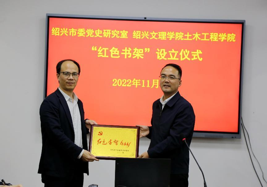 11月24日,绍兴市委党史研究室向土木工程学院党委赠送了100余册红色书籍,并举行了“红色书架”示范点授牌仪式。“红色书架”的设立,旨在宣传普及党史知识,弘扬传承革命文化,发挥党史“以史鉴今、资政育人”作用。