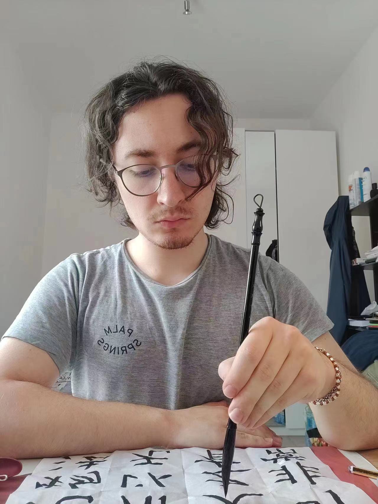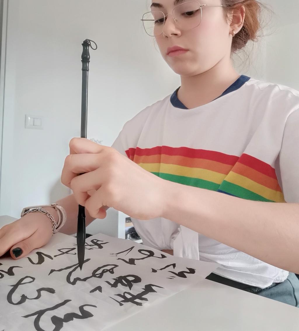 意大利学生练习书法