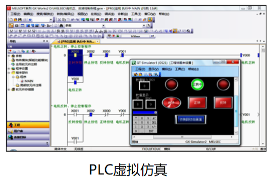 赵徐涛老师应用GX Woeks2虚拟仿真软件,为机械电子工程181班在线上开设《PLC控制电机正反转人机交互设计与仿真》实验项目。梯形图绘制、界面设计、结果输出,每一步操作,都与真实设备具有几乎相同的操作方法,能够取得同样的实验效果。