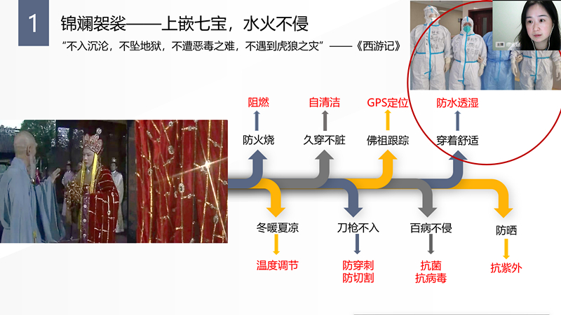 学院党委号召各教工党支部通过线上学习教职工政治理论材料,教育引导每一位教师认真开展线上教学,做好疫情防控下的课程思政工作。教师们在开展线上教学过程中,一方面,加强线上与学生的互动,关注学生线上学习的状态。另一方面,结合专业课程内容,把学校对疫情防控工作的要求够传达给学生,例如缪宏超老师在《纺织品与影视作品》课上,把《西游记》唐僧的锦斓袈裟引入课程思政元素,采用锦斓袈裟较好的防水透湿功能原理来解决防护服闷热不舒适感的问题,从而引导学生深入了解医护人员无私奉献、英勇奋战崇高精神,号召大家切实做好个人防护,与医护人员同心抗疫,增强学生战胜疫情的信心。