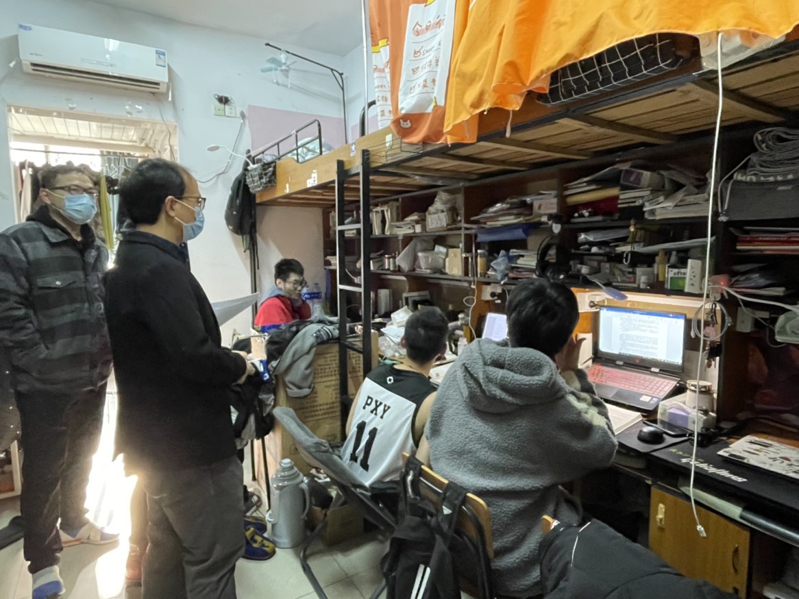 按照学校的统一部署,土木工程学院于12月13日起全面开展线上教学。12月13日上午,线上教学第一天,学院领导毛宇锋等深入学生宿舍,实地查看了学生们上课情况,并了解了住宿环境、考研复习、就业准备、竞赛培训和生活保障等情况,勉励大家要克服疫情防控工作带来的不便,科学制定计划,以饱满的精神状态投入学习。并叮嘱大家要严格遵守疫情防控期间校园相关管理规定,积极配合学校防疫工作,确保自身平安健康。