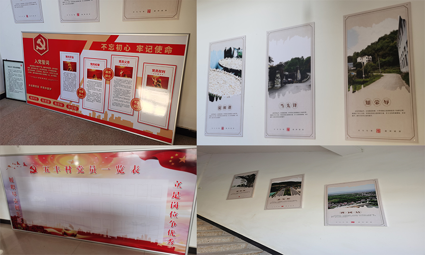 为支持五丰村开展文化建设,支部为村委办公室、楼梯过道、走廊等场地设计制作了一批广告宣传板,并为村委添置了若干办公耗材,捐赠了《亮旗》《党建文汇》等党建书籍和杂志期刊。