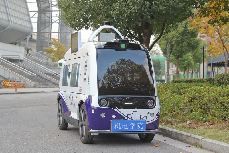 只见一辆无人驾驶的白色小车在校园内穿梭,学生可招手叫停小车,通过扫码自助购买车内的饮料,引来不少学生好奇尝鲜。这是绍兴城投智慧公司和百度公司合作开发的首批无人驾驶智慧零售车,由机械与电气工程学院负责校园演示保障。