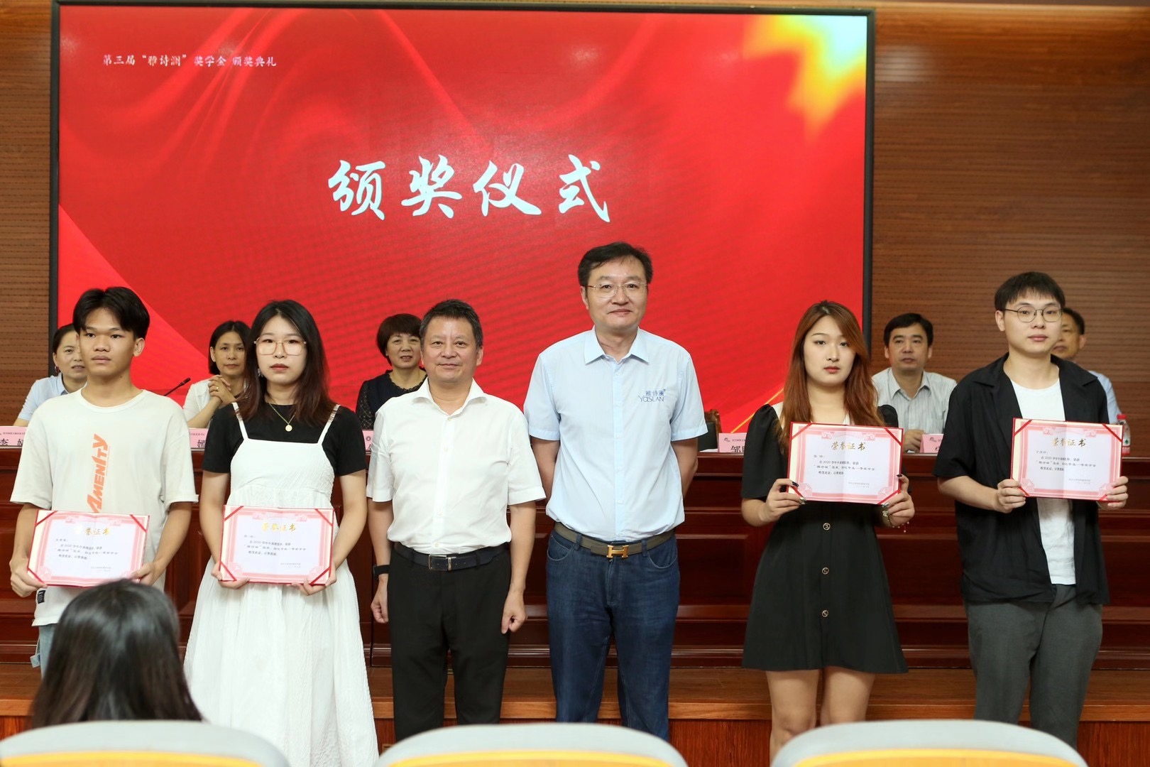 据悉,“雅诗澜”奖学金由浙江立桐布业有限公司董事长邹胜平先生于2018年在我校设立,目前已经连续举办三届,奖学金专门用于奖励纺织服装学院成绩优异、表现突出的服装、轻化专业学生,学习优秀的新生以及考研成功的学生。本年度共有78位同学获得雅诗澜奖学金,其中24位同学获得服装、轻化专业奖学金,30位同学获得新生奖学金,24位同学获得考研奖学金。