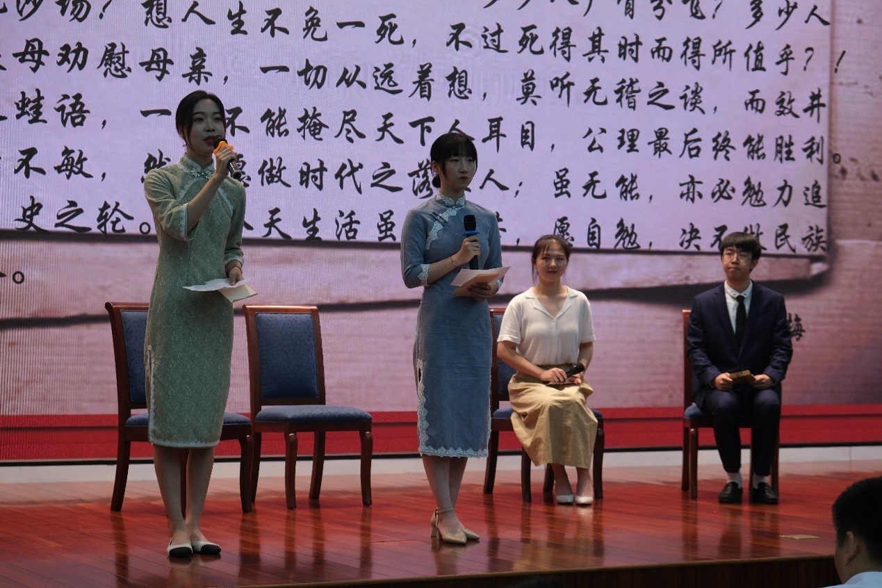 经过初赛、复赛的层层角逐,最终有13件朗诵作品从110件申报作品中脱颖而出,顺利入围决赛。来自14个学院的十三组同学声情并茂地朗诵了英雄们的“一封家书”,并采用情景剧、访谈、时空对话等多种形式,深动展示了俞秀松、裘古怀、王孝和、方志敏、赵一曼、赵云霄等共产党人为了革命事业 “舍小家为大家”的革命情怀。同学们在巾帼英雄们满载家国柔情与革命豪情写就的家书中,感悟党的初心使命,追寻党的精神谱系,传承党的红色基因,获得铭记、奋进的力量。