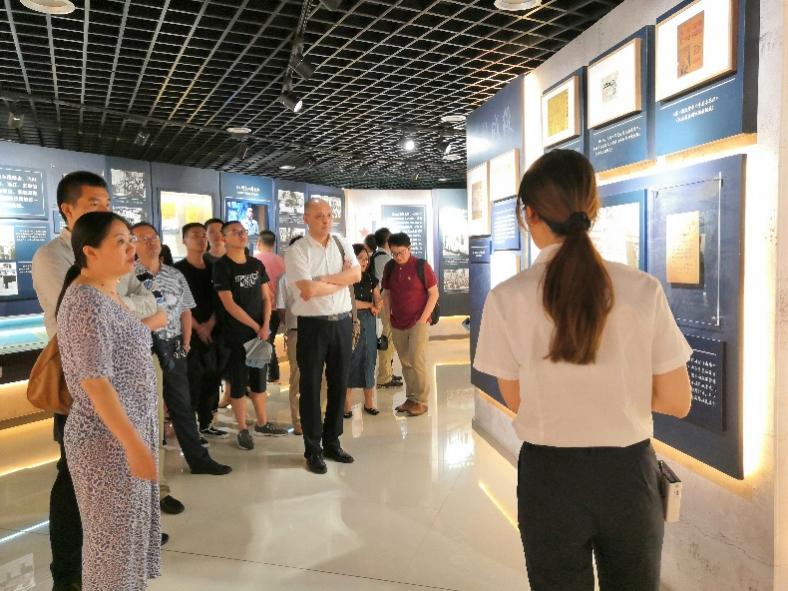 在绍兴市档案馆,全体师生党员首先参观了“建党百年  初心如磐——长三角红色档案珍品展”,通过“开天辟地宏图起”“革命洪流风云咤”“中流砥柱御外侮”“天翻地覆慨而慷”四个版块的参观学习,领略了中国共产党坚守初心使命,团结带领长三角地区人民历经千难万险,谋求民族独立和人民解放的壮阔图景。随后,全体师生党员又参观了《越地记事——档案里的绍兴历史》展厅,在展厅中看到了绍兴自小黄山文化到如今新时代的沧桑巨变与经济社会发展历程。
