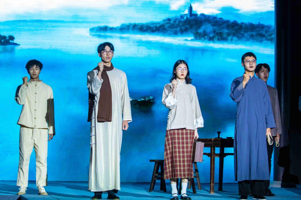 今年是中国共产党成立100周年,在服装设计专业毕业生设计的47个主题系列123套优秀毕业作品展演的基础上,今年还新增设了一个环节——以建党百年历史为主题背景,选择1921-1949年、1949-1978年、1978-1992年、1992-2012年、2012-2021年共五个时间段进行具有时代特色的服装进行展示,分为“革命”“新生”“改革”“发展”“逐梦”五个章节,用情景表演的形式向广大师生展示中国共产党百年来,走过漫道、越过雄关、开创新中国、建设新中国和引领中国进入社会主义新时代的艰苦奋斗历程。服装专业学子用自己智慧的双手和精彩的表演,来弘扬红色文化,传递青春的正能量。将党史学习教育融入专业实践和课程,从专业实践的视角激发青年学生进一步深化对于中国共产党历史的认识,推动从百年党史中汲取奋进的动力,勇担新时代新征程赋予的责任和历史使命。