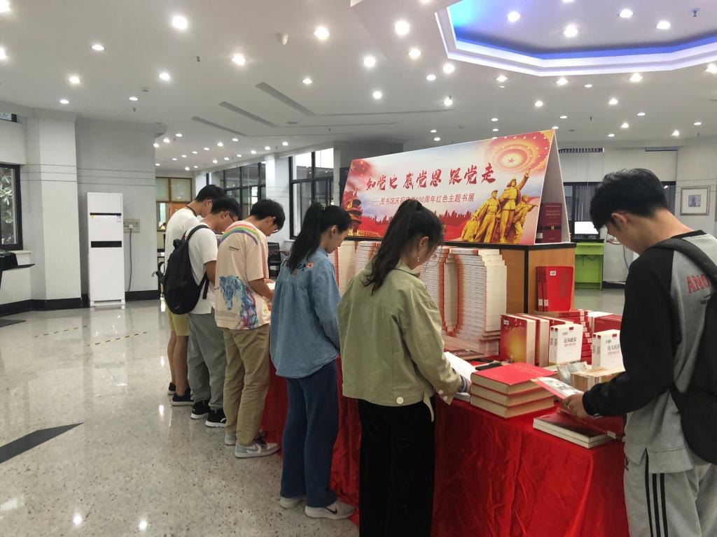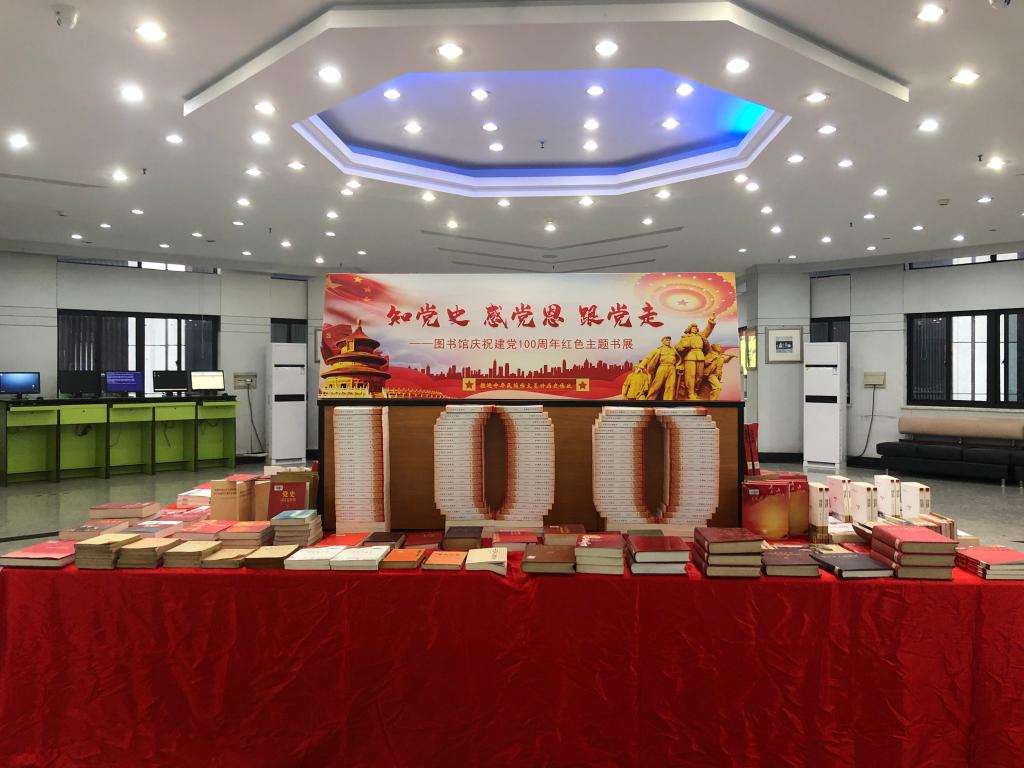 为庆祝建党100周年,助力党史学习教育,近期,图书馆在二楼大厅举办“重温红色经典,坚定理想信念”红色主题书展。