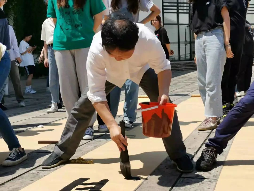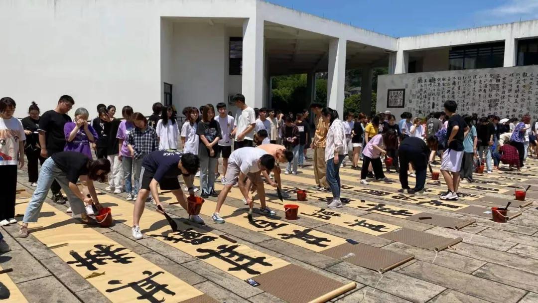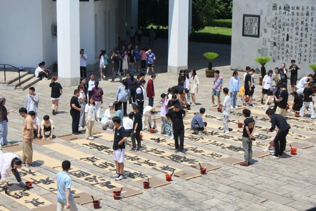 5月14日,在兰亭书法艺术学院晋唐心印照壁前,一年一度的百人同书“畅写”活动如约举行。