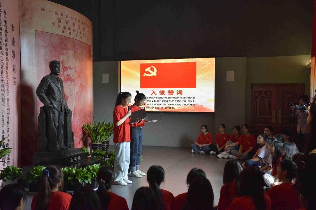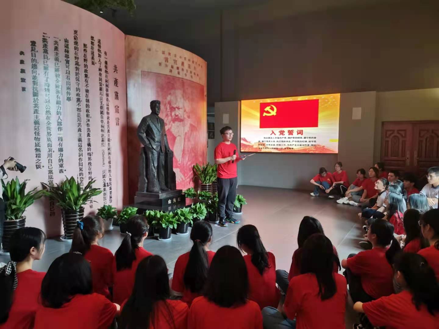 参观结束后,大家开展了丰富多彩的团日活动。现场进行了团课展示,我校马克思主义学院学生向在场师生讲述俞秀松的革命事迹和优秀精神品质,朗读了俞秀松“红色家书”,宣讲了习近平总书记考察清华大学讲话精神,大家还将此次学习的感言粘贴在活动主题板上。活动现场还举行了百年团史知识竞赛。
