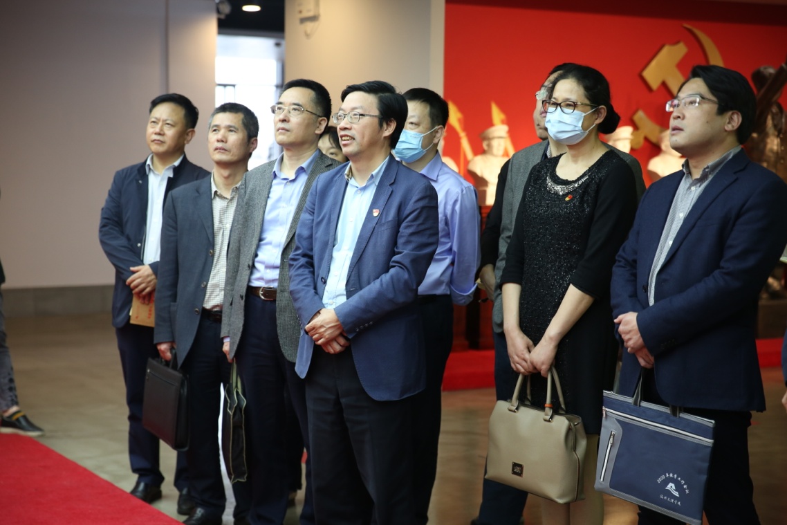 伟丰红色藏品馆集中展现了自1921年中国共产党成立以来,党和人民在各个重大历史时期内的奋斗经历、建设成就,共有“伟大的中国共产党诞生”“土地革命及二万五千里长征”“抗日战争”“解放战争”“社会主义建设初期”“改革开放和中国特色社会主义新时代”等六大部分红色藏品。在讲解员的带领下,院领导一行怀着崇敬的心情驻足参观,沿着参观路线边走、边听、边看、边悟,重温中国共产党百年来波澜壮阔的伟大历程,感受一代又一代中国共产党人为取得国家独立、人民解放、民族复兴而进行的不懈努力,对党史有了更直观生动的认识。