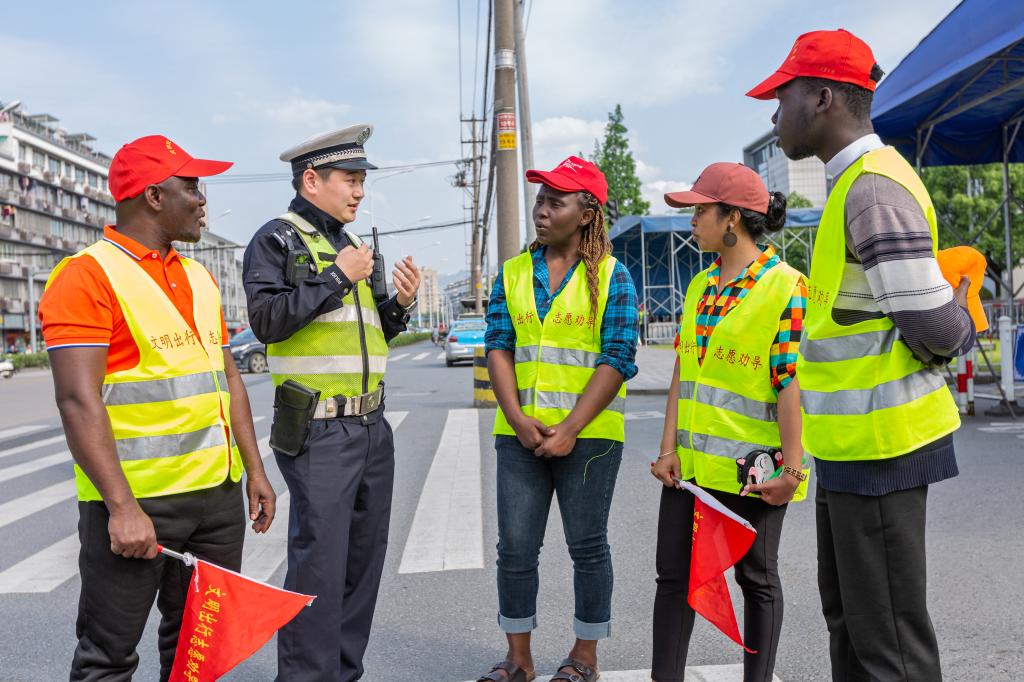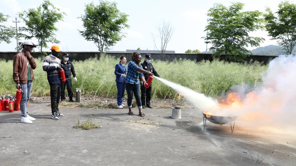 毛军解答了留学生日常学习和生活中遇到的相关法律法规问题。越城区出入境管理大队副队长沈瑛针对留学生在绍生活涉及的签证、居留等具体事项作专题政策解读。越城区消防大队宣传员马亚娜指导留学生开展消防安全演习,为留学生讲解消防火灾逃生方法及注意事项,并实践操作指导留学生正确使用灭火器。绍兴市交管局交警赵海涛交警在南山校区门口指导留学生实地执行交规,通过查处闯红灯、骑车带人、骑电动车不带安全帽等行为让留学生更真切地了解交通法规,防范留学生交通安全事故的发生。