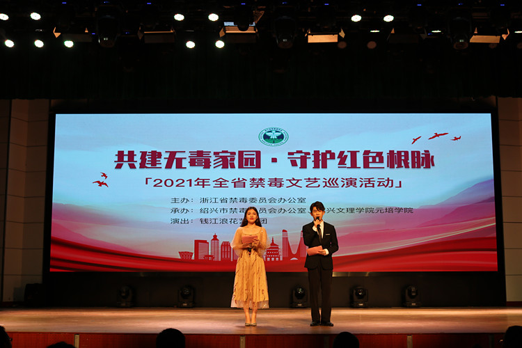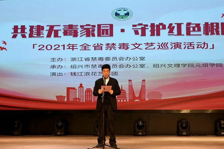 4月14日下午,由浙江省禁毒办主办、绍兴市禁毒办和元培学院共同承办的“健康人生 无毒家园”2021年全省禁毒文艺巡演活动走进绍兴,在元培学院国际文化交流中心报告厅上演了一场精彩纷呈的禁毒专题宣传演出。市委政法委办公会议成员、二级调研员曹银翔,市禁毒委副主任、市公安局副局长项万林,市禁毒委副主任、市司法局二级调研员周朔东,市总工会副主席何贝,市禁毒支队支队长徐华良,越城区公安分局副局长杨尧康和学院相关领导出席活动,各分院学生代表300余人参加活动。