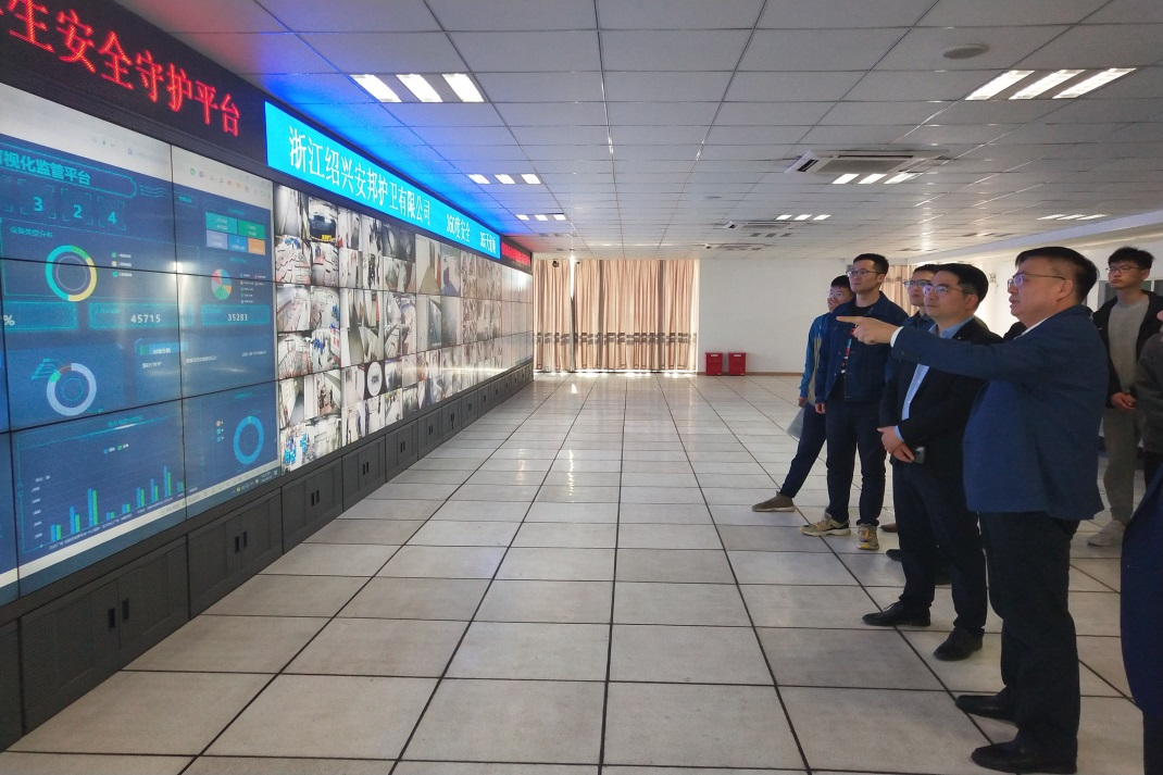 在浙江绍兴安邦护卫有限公司信息技术应用创新攻关基地,公司党委书记、董事长胡秀荣向为学院师生介绍了公司发展历程和未来规划,重点讲解了公司科技创新转型之路,强调了公司新业务与学院专业的高匹配度。
