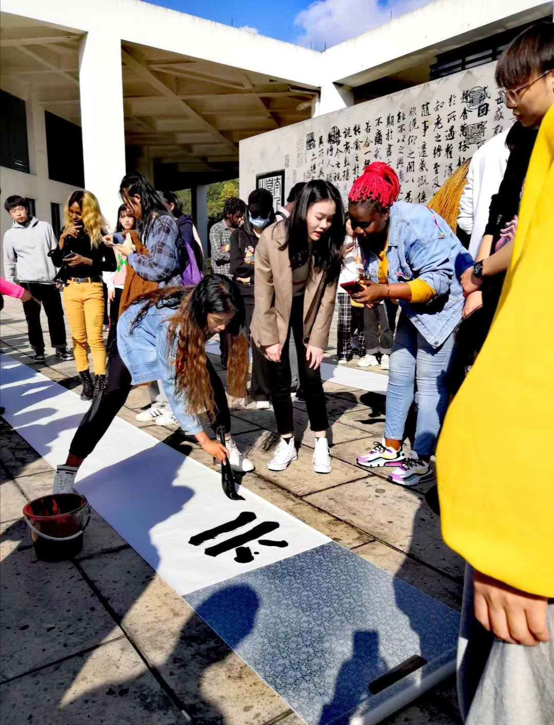 11月5日,因疫情影响而延后的“畅写阳春”活动在兰亭书法艺术学院照壁前顺利举行。学校相关职能部门负责人,兰亭书法艺术学院师生及学校留学生参加活动。