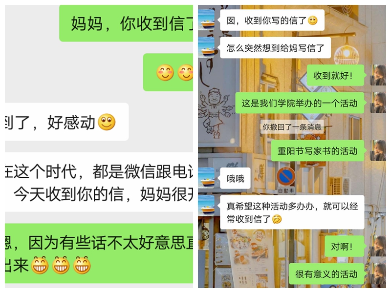 从2015年开始,数理信息学院每年重阳节开展“书香重阳,家书寄情”九九重阳家书活动,一张张照片与一份份视频传递出满满的爱意与思念。通过手写家书的形式让同学们对家长、亲人、朋友表达自己的情感,将孝敬教育融入学校教育体系的实践教育和校园文化之中,并在融入过程中培育和践行社会主义核心价值观。此次活动在传承传统文化活动形式的同时,也鼓励各位参与者运用现代科技手段记录参与此次家书活动的过程,赋予此次活动时代文明特色。