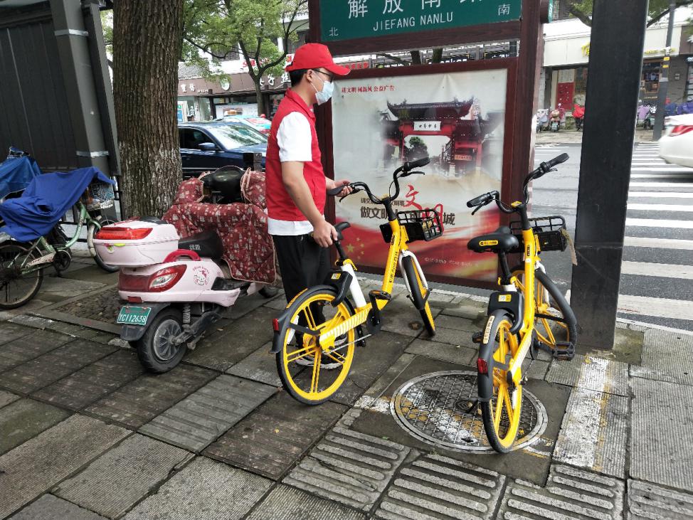 维护停车秩序,劝导或帮助市民按秩序停好非机动车