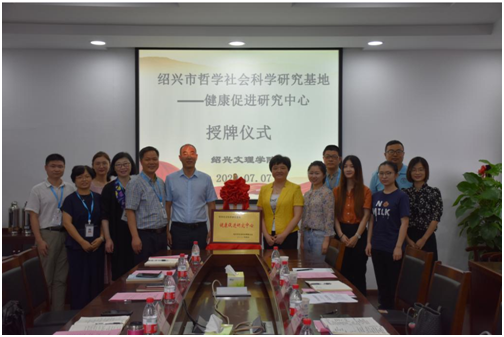 7月7日,绍兴市哲学社会科学研究基地——健康促进研究中心挂牌仪式在医学院219会议室 举行。绍兴市社科联党组成员、专职副主席王晶,市社科联科研线负责人、经济发展研究室主任张恬,医学院党政领导班子成员及中心主要负责人参加。