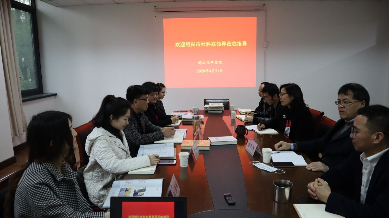 4月21日,绍兴市社科联主席柳巨波一行5人来到我校越文化研究院考察调研。