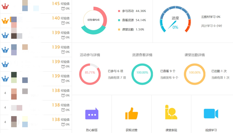 督促学生在家不懈学习,跟上课程进度,“云课堂”少不了“云监工”。《中国近现代史纲要》的韩宏伟老师是元培众多“云监工”之一,他通过组织“头脑风暴”等活动来调动学生积极性,提高学生的学习兴趣,同时也在“蓝墨云班课”平台上通过学习经验值排行、分享优秀作业的方式督促学生跟紧学习步伐,跟上教学进度,跟进课后作业。
