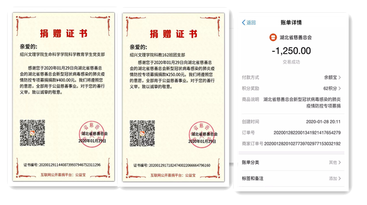 疫情无情,人间有爱。学院各学生党支部及各班团支部自觉自愿发起募捐活动,截至1月30日,共募集救灾资金11252.17元,全部捐赠湖北慈善总会等正规机构,为抗击疫情助力。体现出我院师生关心疫情、关心社会、关心国家的责任意识,为疫情防控工作贡献力量。