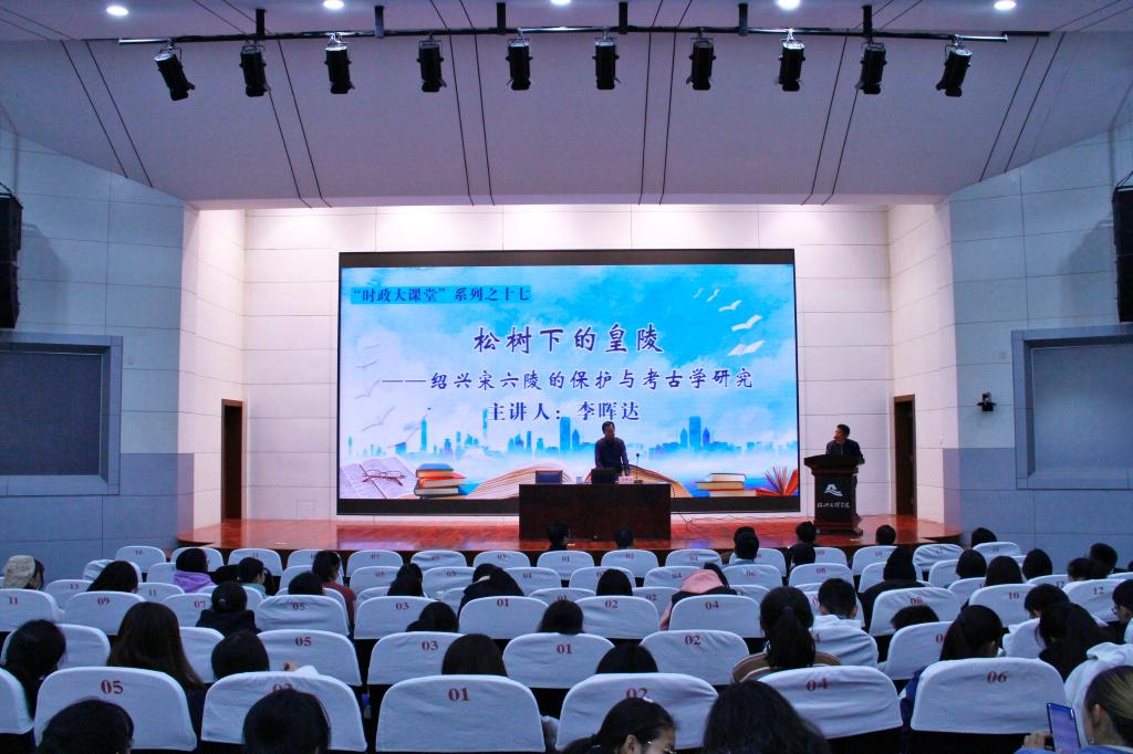 11月19日晚,浙江省文物考古研究所水下考古中心主任、副研究馆员李晖达做客“时政大课堂”,作题为《松树下的皇陵——绍兴宋六陵的保护与考古学研究》专题讲座。部分二级学院学生科长、辅导员、医学院2019级学生、商学院部分2019级学生共300余人聆听了讲座。