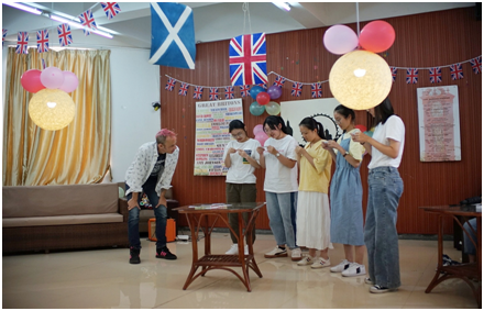 踏进英国馆,映入眼帘的是一幅幅英国海报和一面面红蓝白三色小国旗。英国外教Cranmore为本次活动精心策划,给2019级的新生带来别开生面的体验,他将听力训练融入音乐,语音教学融入游戏,寓教于乐,精彩纷呈。