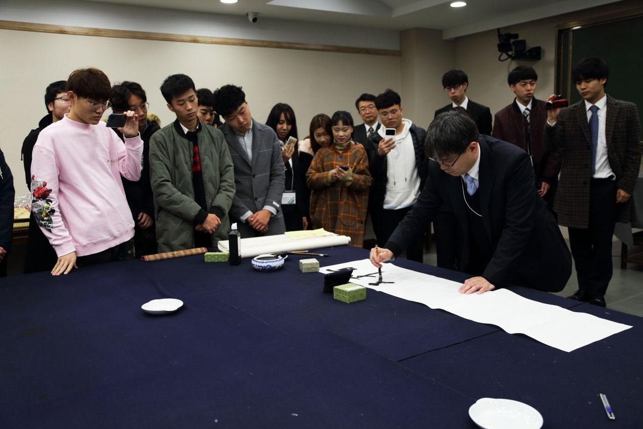 日本创价大学一行先后参观了校园、兰亭书法艺术学院标准化教室等,对学院的各项教学配置给予高度评价。师生还开展了书艺交流,一笔一划之间,彰显了中日两国文化的精髓。不同的文化背景,相同的艺术形式,书法让中日两国学生之间的友谊更加深厚。