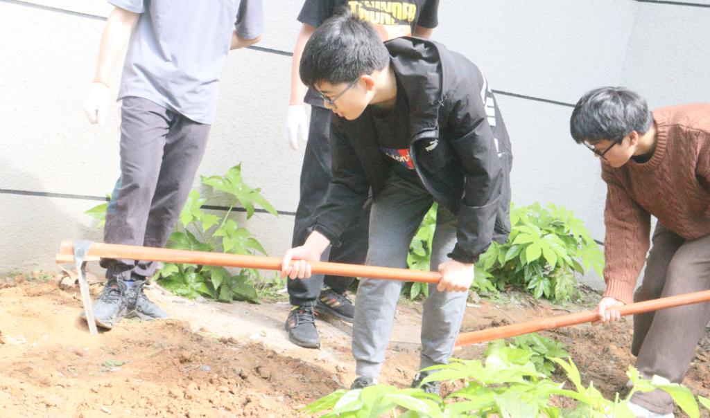 4月22日下午,阳明书院开展“绿色同行,联动你我”书院美化主题活动。阳明书院学生在寝室周边空地种下花卉绿植,通过自己的双手播种下一颗颗希望的种子,老师们在一旁对植物的栽种、培育提出了种种建议。活动发挥大学生自我管理主体功能,践行“一站式”学生社区自我管理、自我美化的要求,培养学生“勤俭”“合作”“礼让”和“担当”的精神。