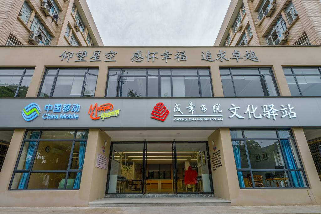 成章书院文化驿站设有舒心坊、心灵下午茶、师生交流室、朋辈讲堂、党团活动室等,主要用于开展书院讲堂、心理咨询、学习交流、谈心谈话、党团活动、文化活动等,是“一站式”学生社区凸显先锋、温馨、文化特征的重要载体。