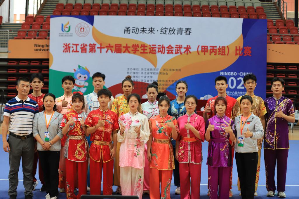 体育教育191班柳凯、201班李海林和202班胡艺释分获得剑术、棍术和长拳比赛金牌。体育教育191班李灿、202班杜子津、211班程钰琪、214班王奕潇、213班翁玥同学共斩获2枚银牌和3枚铜牌。商学院沈奕言在共24名运动员的甲组(普通大学生组)枪术比赛中,获得第四名。