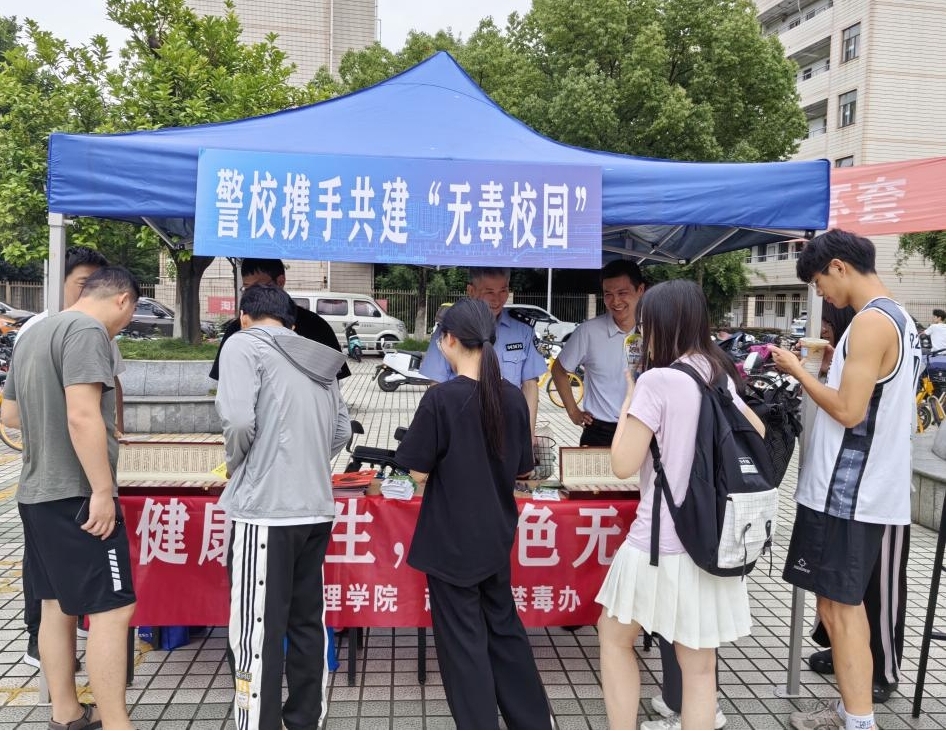 在“6·26国际禁毒日”来临之际,保卫处联合越城区公安分局禁毒大队、塔山街道共同开展“健康人生 绿色无毒”为主题的禁毒教育宣传活动,进一步增强广大师生对毒品危害性的认识和自我保护意识,坚决抵制毒品侵害。